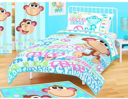 Amazon Com Love Peace Rock N Roll Monkey Twin Comforter Set 4 Piece Bedding Home Kitchen