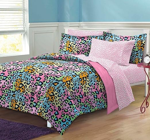 Amazon Com My Room Neon Leopard Ultra Soft Microfiber Girls Comforter Set Multi Colored Twin Twin X Large Home Kitchen