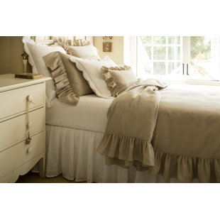 Natural Linen Bedspread With Ruffle Fall Handcrafted By Superior Custom Linens