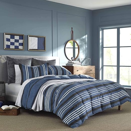 Amazon Com Nautica Home Craver Collection 100 Cotton Cozy Soft Durable Breathable Striped Comforter Matching Shams 3 Piece Bedding Set Queen Navy Home Kitchen
