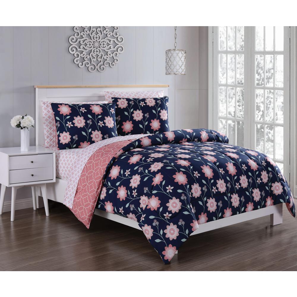 Unbranded Britt 7 Piece Navy Coral Queen Comforter Set Bit7bbfuqughnc The Home Depot