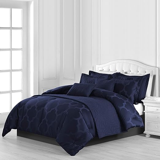 Amazon Com Comfy Bedding Lantern Jacquard Microfiber 8 Piece Comforter And Coverlet Set Navy Blue Queen 8 Piece Home Kitchen