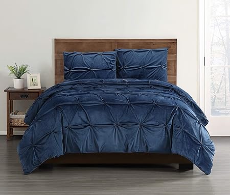 Truly Soft Pleated Velvet Full Queen 3 Piece Comforter Set In Navy Blue Amazon Co Uk Kitchen Home
