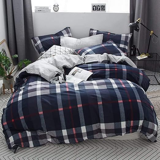 Amazon Com Clothknow Navy Plaid Comforter Sets Queen Cotton Tartan Checkered Bedding Full Blue Grid Bedding Comforter Set For Boys Men Teen 3 Pcs Comforter Sets With 2 Envelope Pillowcases Kitchen Dining