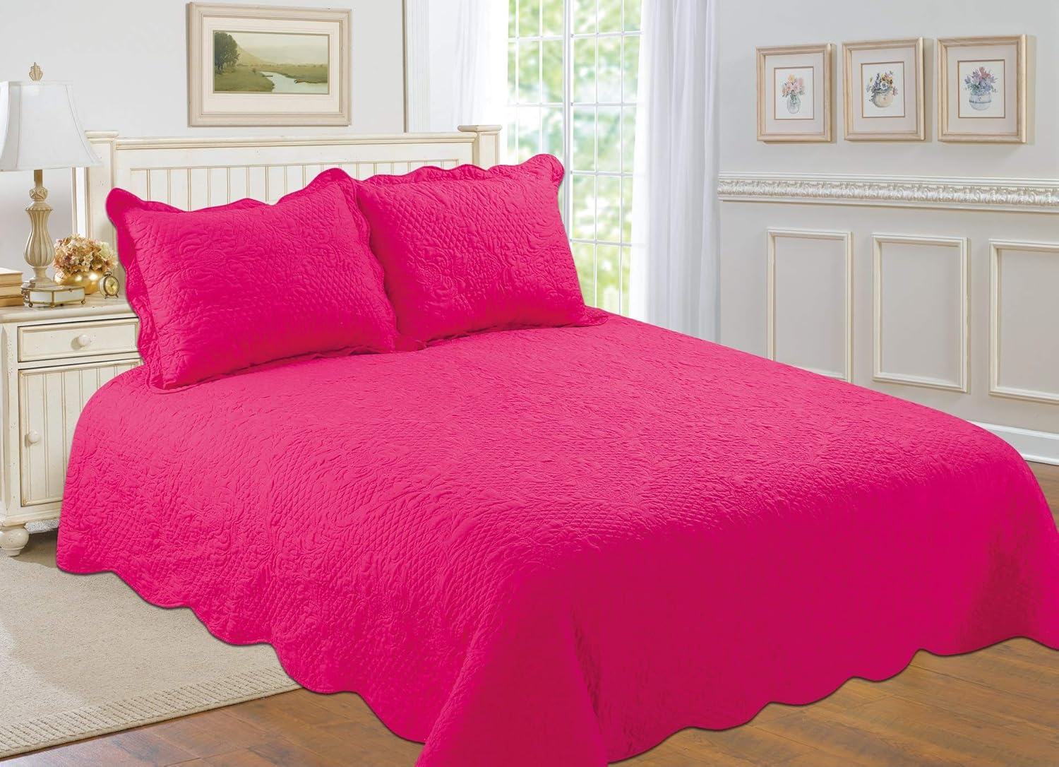 All For You 3 Piece Reversible Bedspread Coverlet Quilt Set With Embroideries Bright Neon Pink Full Queen By All For You Amazon In Home Kitchen