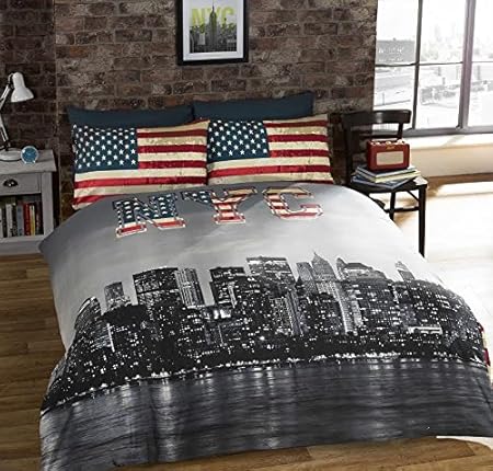 New York City Skyline Grey Black Double Bed Size Reversable Red Cream Flag Duvet Cover Quilt Set By Hallways Amazon Co Uk Kitchen Home