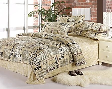 Haopiaoliang English Newspaper Bedding Comforter Set Queen Full Size Bedspread Duvet Cover Sheet Bed In A Bag Bedroom Quilt Linen 100 Cotton Amazon Co Uk Kitchen Home