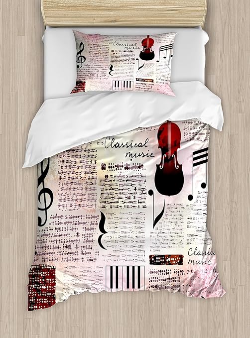 Amazon Com Ambesonne Old Newspaper Duvet Cover Set Classical Music Theme Instruments Piano Violin Notes Art Decorative 2 Piece Bedding Set With 1 Pillow Sham Twin Size Pink Black Home Kitchen