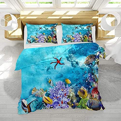 Amazon Com Sleepwish Blue Ocean Comforter Set Ultra Soft 3d Print Bedding For Queen Size Bed 4 Pieces Tropical Bedding Sets For Beach House 1 Reversible Comforter 2 Pillow Cases 1 Cushion Cover