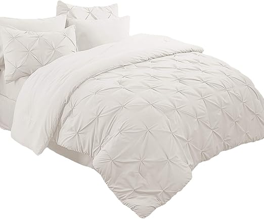 Amazon Com Bedsure 8 Pieces Pinch Pleat Down Alternative Comforter Set King Size 102x90 Inches Solid Off White Bed In A Bag Comforter 2 Pillow Shams Flat Sheet Fitted Sheet Bed Skirt 2 Pillowcases