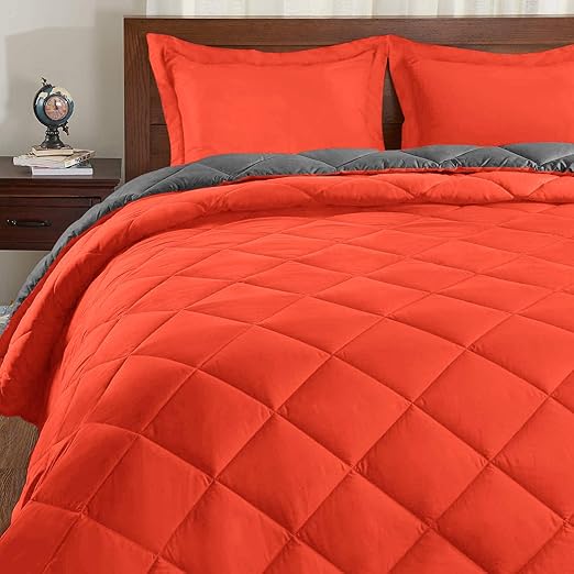Amazon Com Downluxe Lightweight Solid Comforter Set King With 2 Pillow Shams 3 Piece Set Orange And Black Down Alternative Reversible Comforter Home Kitchen