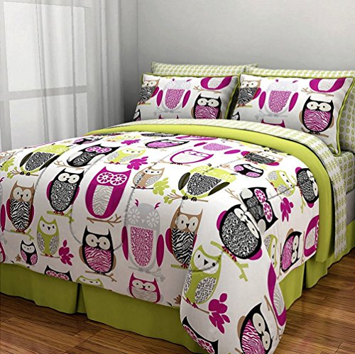 Amazon Com Adorable Girls Teen Kids Owl Bedding Comforter Set Full Queen Polka Dot Geometric 2 Shams Fun Pillow Pink Aqua Blue Teal Purple Green Turquoise H S Sleep Mask Bedspread