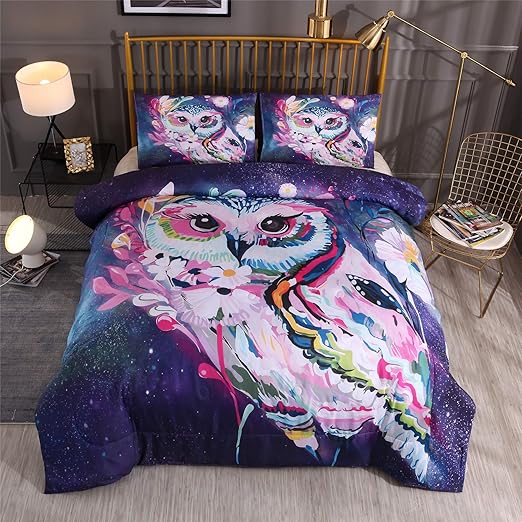 Amazon Com Galaxy Owl Printed Comforter Sets Queen Purple Soft Microfiber Bedding Comforter Lightweight Quilt With 2 Matching Pillowcases For Kids Teens Girls Boys Kitchen Dining