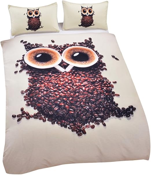 Amazon Com Sleepwish Owl Bedding Sets 3 Piece Cute Coffee Beans With 2 Cups Pattern Children S Owl Duvet Covers Double Size Home Kitchen
