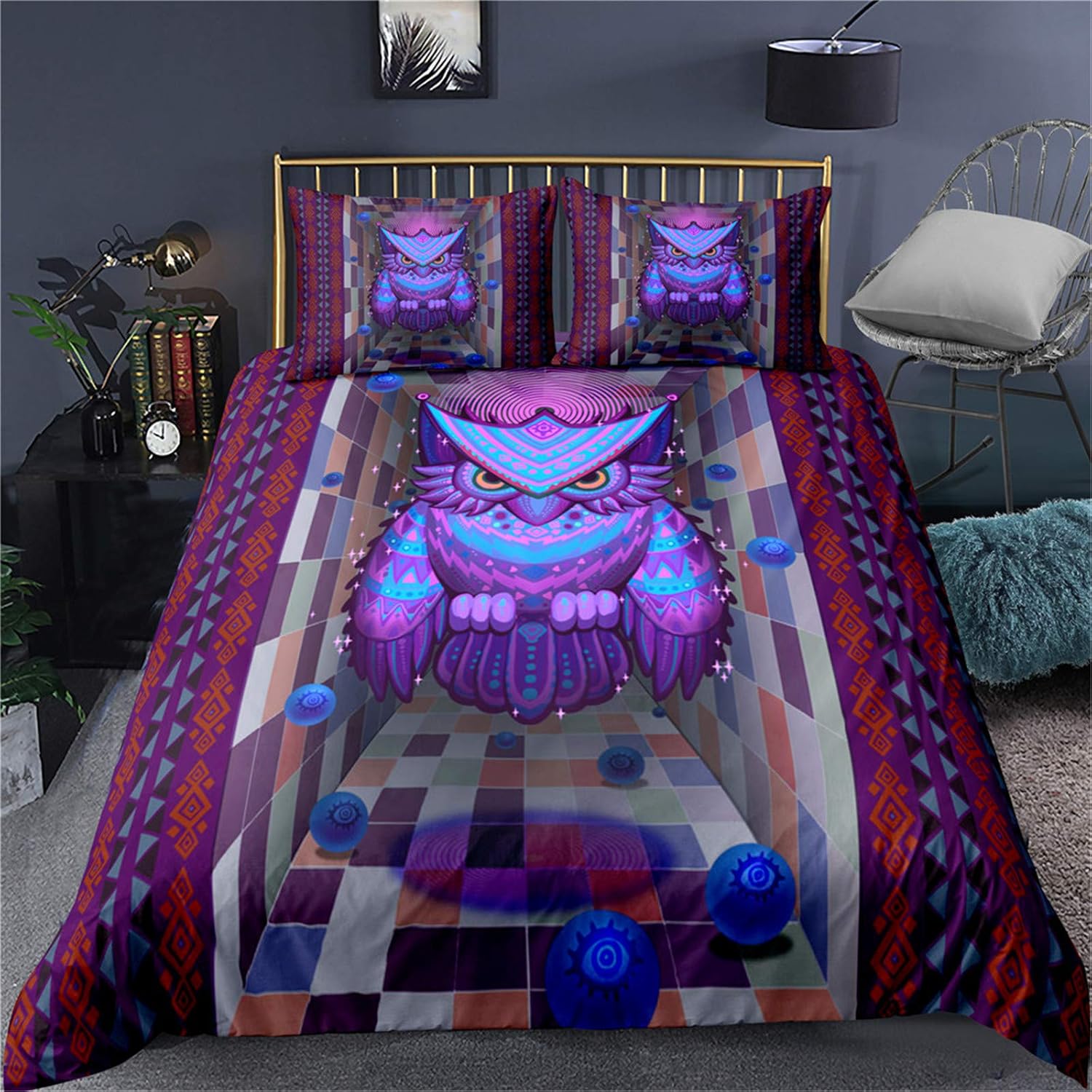 Amazon Com Owl Bedding Set 3d Owl Abstract Modern Art Printed Comforter Sets Soft Microfibe Bedding Comforter For Teens Girls Boys 3 Piece Kids Duvet Cover Sets 1 Duvet Cover And 2 Pillowcases