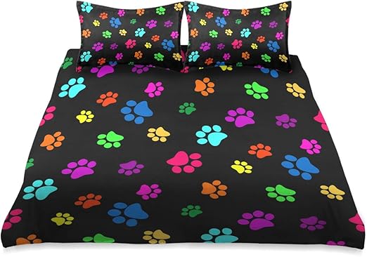 Amazon Com Lvshen Dog Paw Print Bedding Sets Queen Size 3 Pieces Printed Sheets Bed Coverlet Duvet Cover Set With 2 Pillow Cases Shams For Home Women Men Home Kitchen