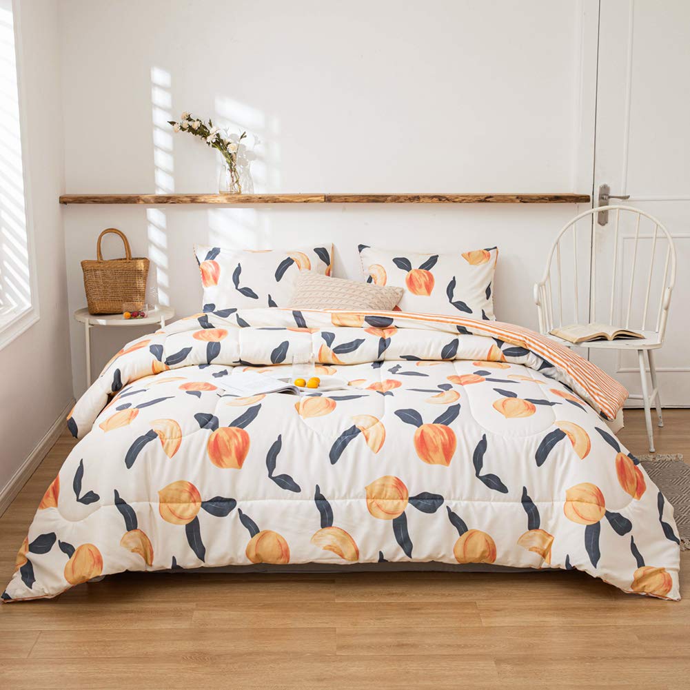 Amazon Com Peach Fruit Comforter Set Stripes Comforter Peaches And Red Stripes Reversible Down Alternative Comforter Soft Microfiber Fill Bedding Sets King 1 Peach Comforter 2 Pillowcases King Peach Home Kitchen
