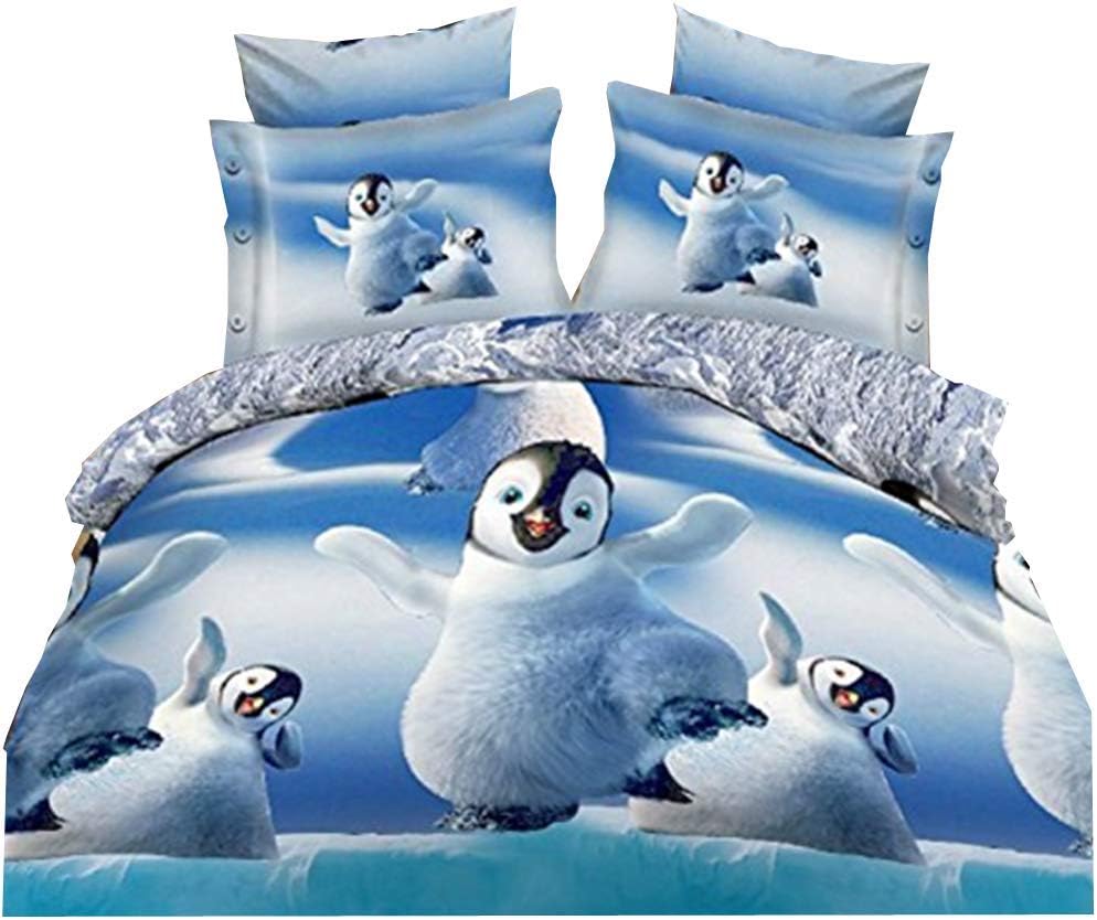 Amazon Com Newrara Penguin Bedding Happy Dancing Polar Penguins 3d Printed 4pcs Bedding Set Duvet Cover Set Full Queen Size For Kids Home Kitchen