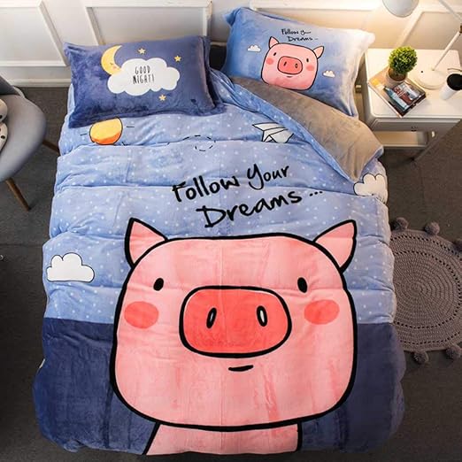 Amazon Com Warm Embrace Kids Bedding Set Flannel Teen Girls Bed In A Bag Pig Duvet Comforter Cover And Pillowcase And Flat Sheet And Comforter Twin Size 5 Piece Home Kitchen