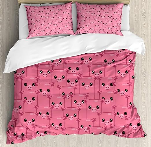 Amazon Com Bhusb 3 Piece Full Bedding Sets Pink Pig Print Kids Queen Duvet Cover Set For Girls Women Soft Cotton Cartoon Comforter Covers For Bedding Collection Full Zipper Closure Home Kitchen