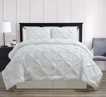 Amazon Com Oxford Decorative Pinch Pleat Comforter Set 4 Pieces Hypoallergenic Comforter Down Alternative Fill Queen White Home Kitchen