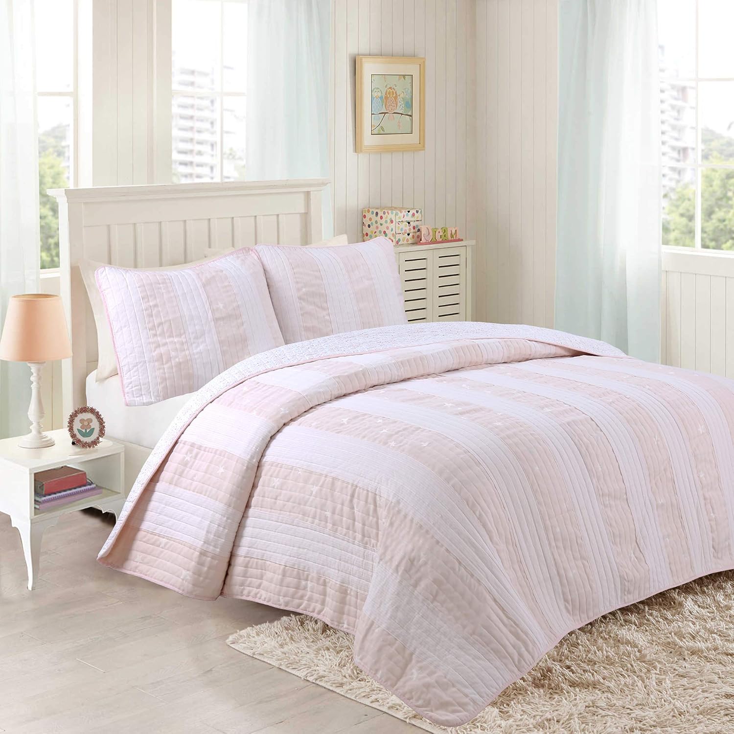 Amazon Com Cozy Line Home Fashions Diana Light Peach White Bold Striped Star Pattern Printed 100 Cotton Reversible Quilt Bedding Set Peach Stripe Full Queen 3 Piece Kitchen Dining