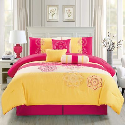 Samantha 7 Piece Embroidered Comforter Set Hot Pink Yellow 884 Full Size Walmart Com Walmart Com
