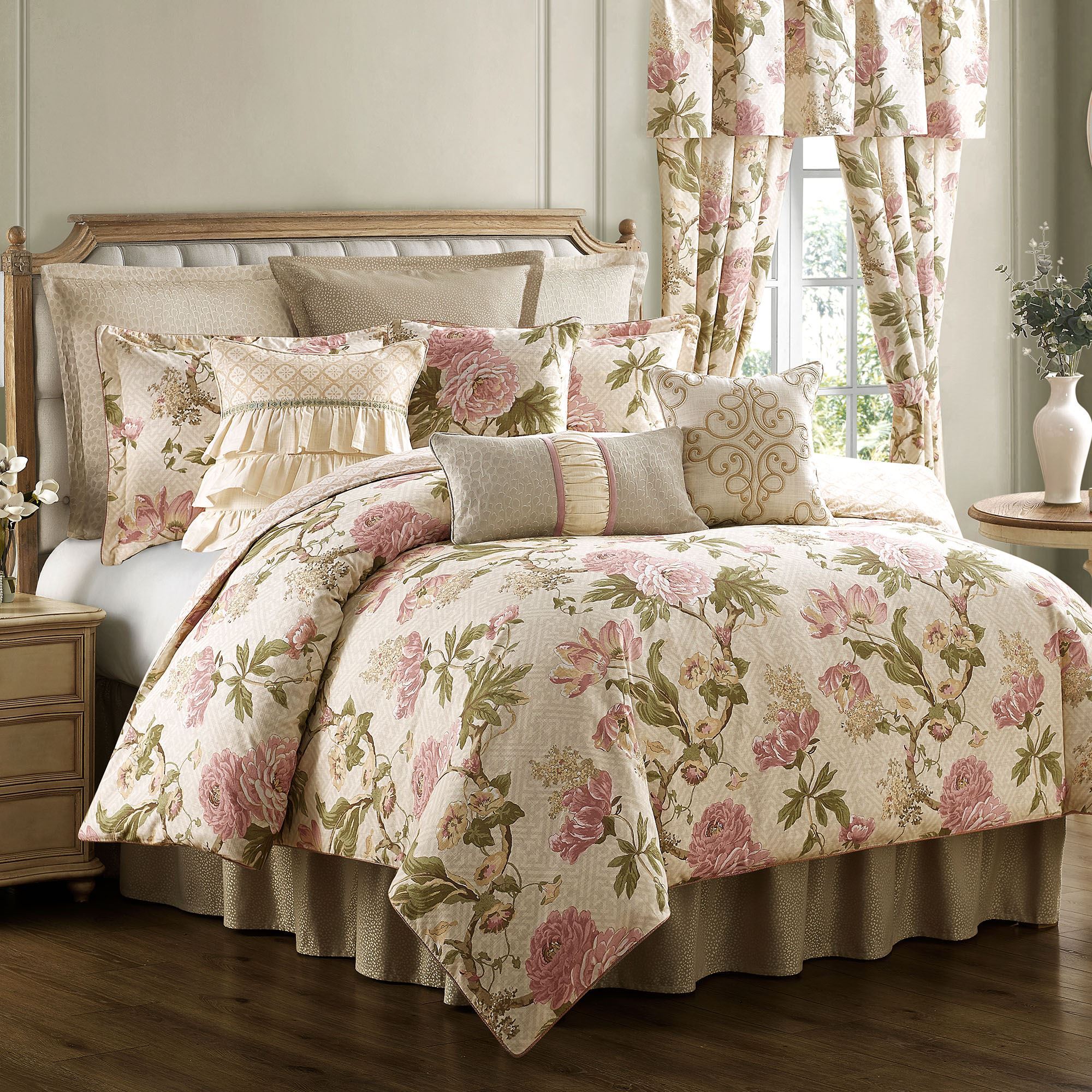 Cottage Rose Aqua Mist Floral Comforter Bedding