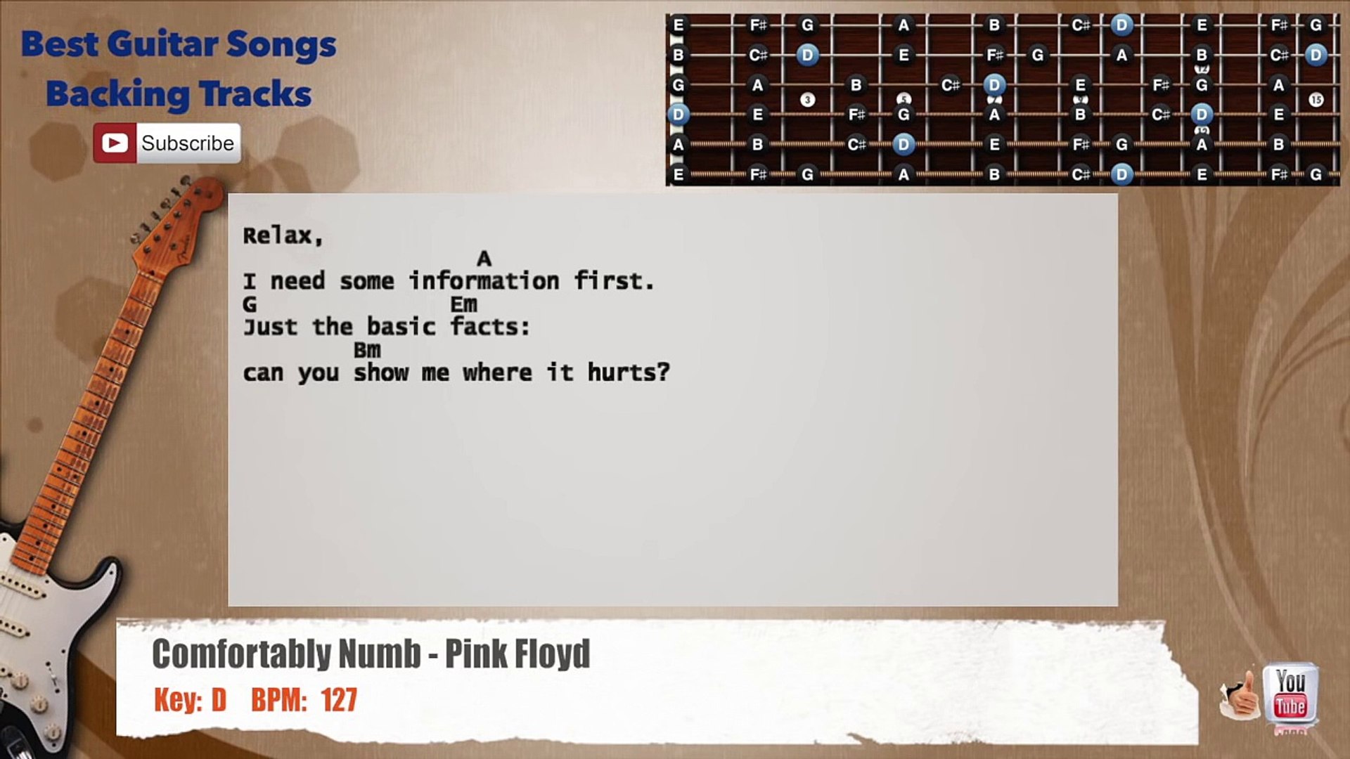 Comfortably Numb Pink Floyd Guitar Backing Track With Vocal Chords And Lyrics Video Dailymotion