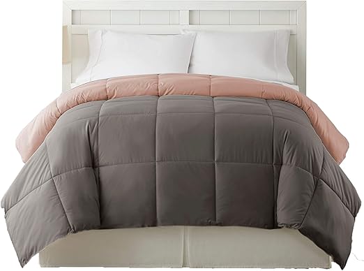 Amazon Com Downluxe Lightweight Solid Comforter Set Queen With 2 Pillow Shams 3 Piece Set Pink And Grey Down Alternative Reversible Comforter Home Kitchen