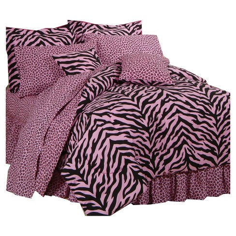 7 Pieces Hot Pink Black And White Leopard Zebra Comforter 92x90 Bed In A Bag Set Queen Size Bedding Where To Buy Spice Ct3