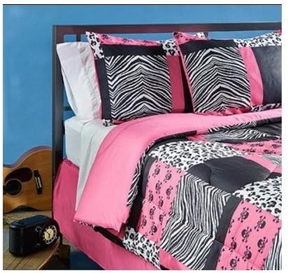 Amazon Com Girl Pink Black Zebra Leopard Full Comforter Set 8pc Bed In A Bag Home Kitchen