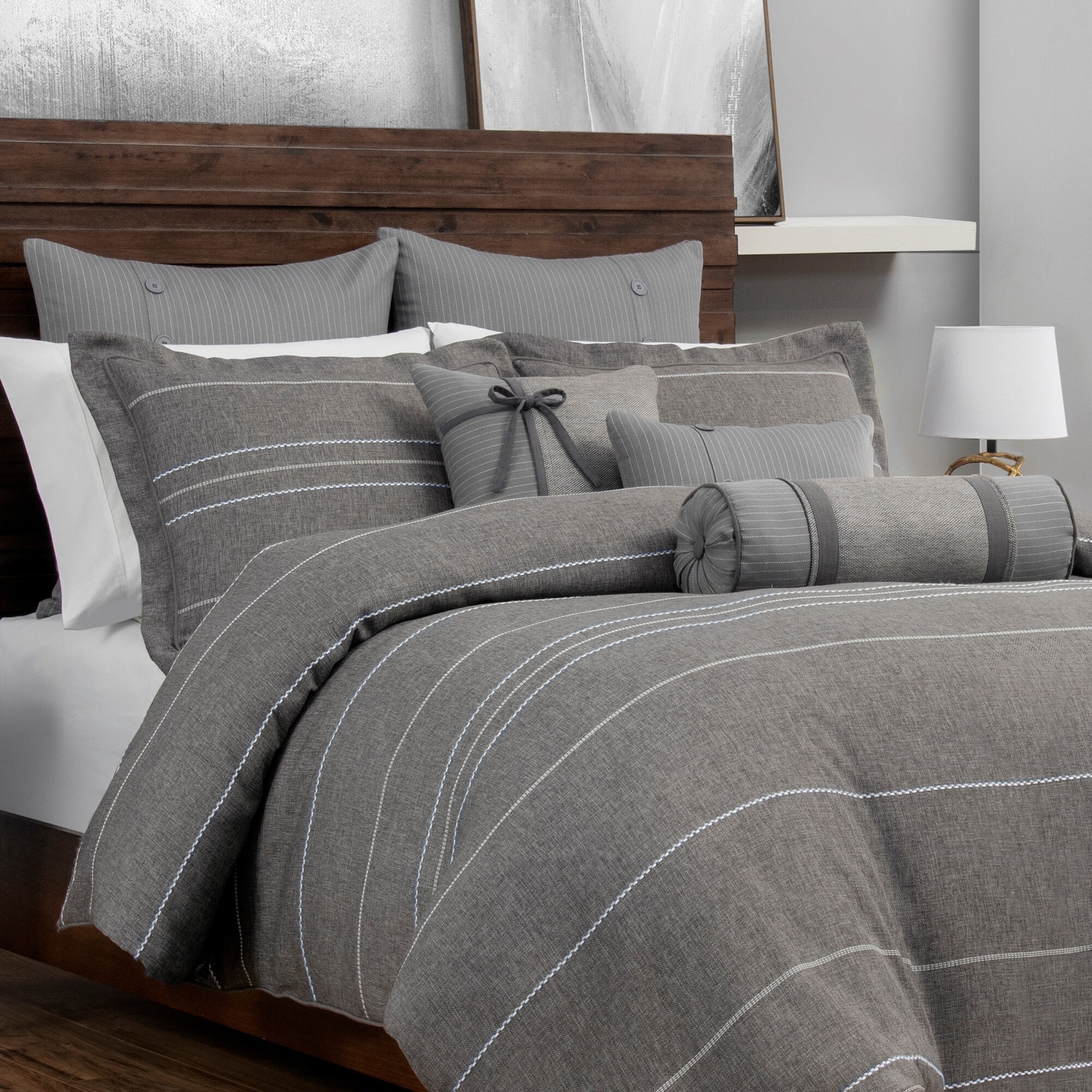Shop Porch Den Molini Grey Woven Pinstripe 3 Piece Comforter Set Overstock 29134062