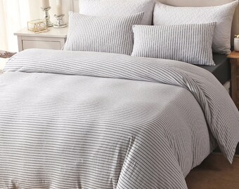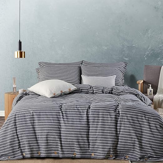 Amazon Com Jellymoni Gray Pinstripe 100 Washed Cotton Duvet Cover Set 3 Pieces Ultra Soft Bedding Set With Buttons Closure Solid Color Pattern Duvet Cover Queen Size No Comforter Kitchen Dining