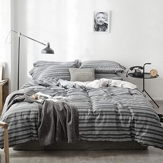 Amazon Com Jellymoni 100 Natural Cotton 3pcs Striped Duvet Cover Sets White Duvet Cover With Grey Stripes Pattern Printed Comforter Cover With Zipper Closure Corner Ties King Size Home Kitchen