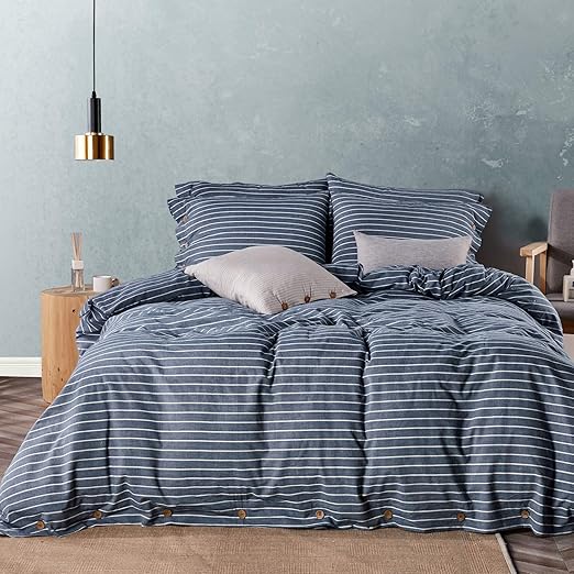Amazon Com Jellymoni Blue Pinstripe 100 Washed Cotton Duvet Cover Set 3 Pieces Luxury Soft Bedding Set With Buttons Closure Solid Color Pattern Duvet Cover Queen Size No Comforter Kitchen Dining