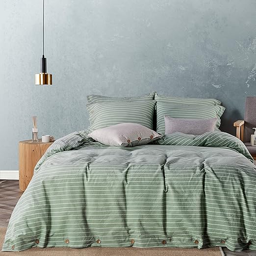 Amazon Com Jellymoni Green Pinstripe 100 Washed Cotton Duvet Cover Set 3 Pieces Luxury Soft Bedding Set With Buttons Closure Solid Color Pattern Duvet Cover Queen Size No Comforter Kitchen Dining