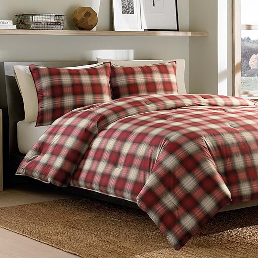 Amazon Com Eddie Bauer Home Navigation Collection Bedding Set 1 Cotton Soft And Cozy Reversible Plaid Comforter Full Queen Red Home Kitchen