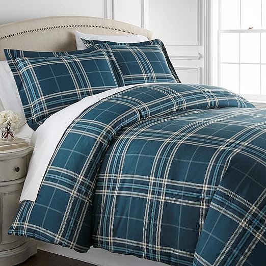 Amazon Com Southshore Fine Living Inc Vilano Plaid Collection Premium Quality Down Alternative Hypo Allergenic Over Sized 3 Piece Comforter Set King California King Blue Home Kitchen