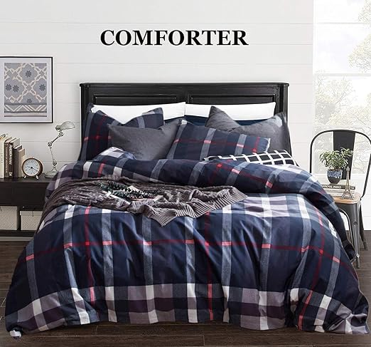 Amazon Com Clothknow Navy Plaid Tartan Comforter Sets Twin Blue Plaid Checkered Bedd Set Twin For Boys Men Teen Grid Bedding 100 Cotton 3 Pcs Comforter Sets With 2 Envelope Pillowcases Kitchen Dining