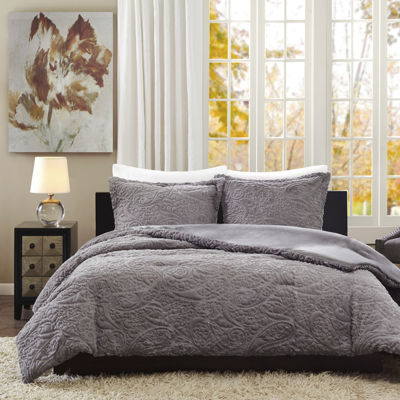 Gray Eugenia Plush Comforter Set Grey Comforter Sets Comforter Sets Bedding Sets Grey