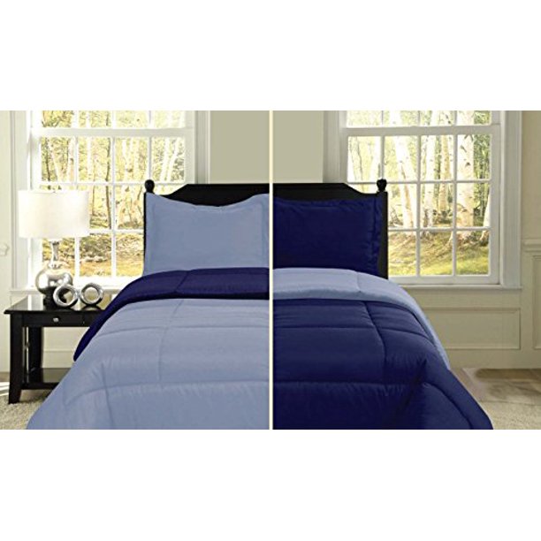 U S Polo Assn 3 Piece Reversible Microfiber Comforter Set Full Queen Navy Medium Blue Walmart Com Walmart Com