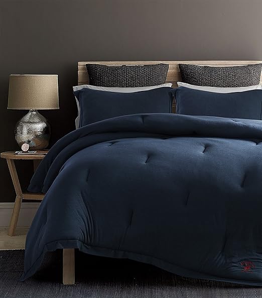 Amazon Com Beverly Hills Polo Club Solid Cotton Rich Ultra Soft Jersey Knit 3 Pieces Comforter Set 1 Comforter 2 Pillow Shams King Navy Home Kitchen