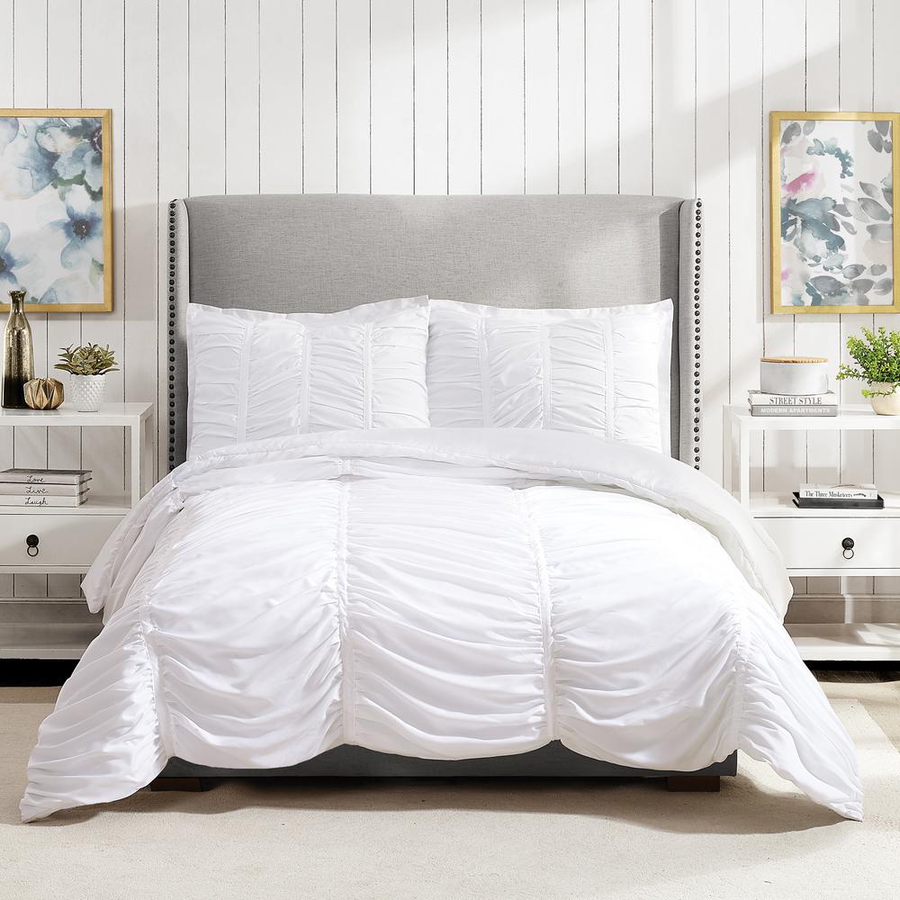 Modern Heirloom Emily Texture 3 Piece White Full Queen Polyester Comforter Set C068918wheds The Home Depot
