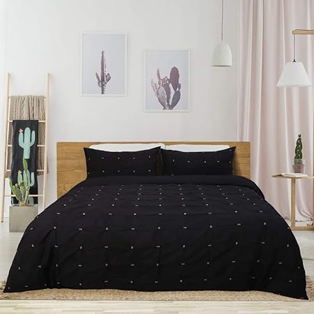 Piccocasa Duvet Cover Sets 3 Piece Pintuck Bedding Set Microfiber Polyester Comforters Cover Bedding Set With Pillow Sham Zipper Closure Corner Black Queen Amazon Co Uk Kitchen Home