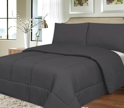 Amazon Com Sweet Home Collection Down Alternative Polyester Comforter Box Stitch Microfiber Bedding Queen Gray Home Kitchen
