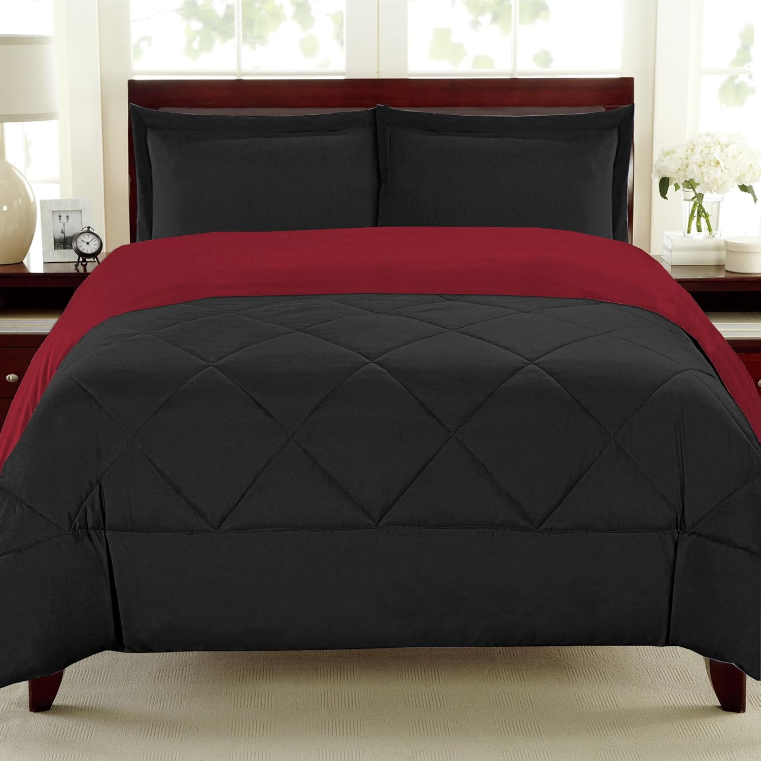 Amazon Com Sweet Home Collection 3 Piece Reversible Polyester Microfiber Goose Down Alternative Comforter Set With Pillow Shams Full Queen Burgundy Black Home Kitchen