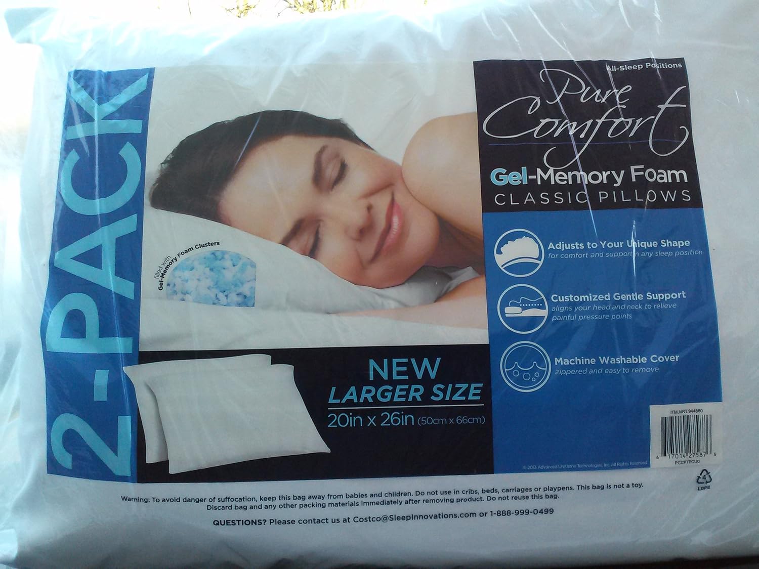 2 Pure Comfort Gel Memory Foam Classic Pillows Large Size 20 X 26 Machine Washable Cover Amazon Ca Home Kitchen