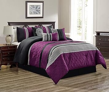 7 Pc Modern Hampton Comforter Set Black Purple Bed In A Bag Queen Size Bedding Look Check Price Manazza