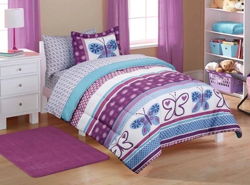 7pc Girl Purple Blue Butterfly Polka Dot Twin Size Comforter Set 7pc Bed In A Bag On Galleon Philippines